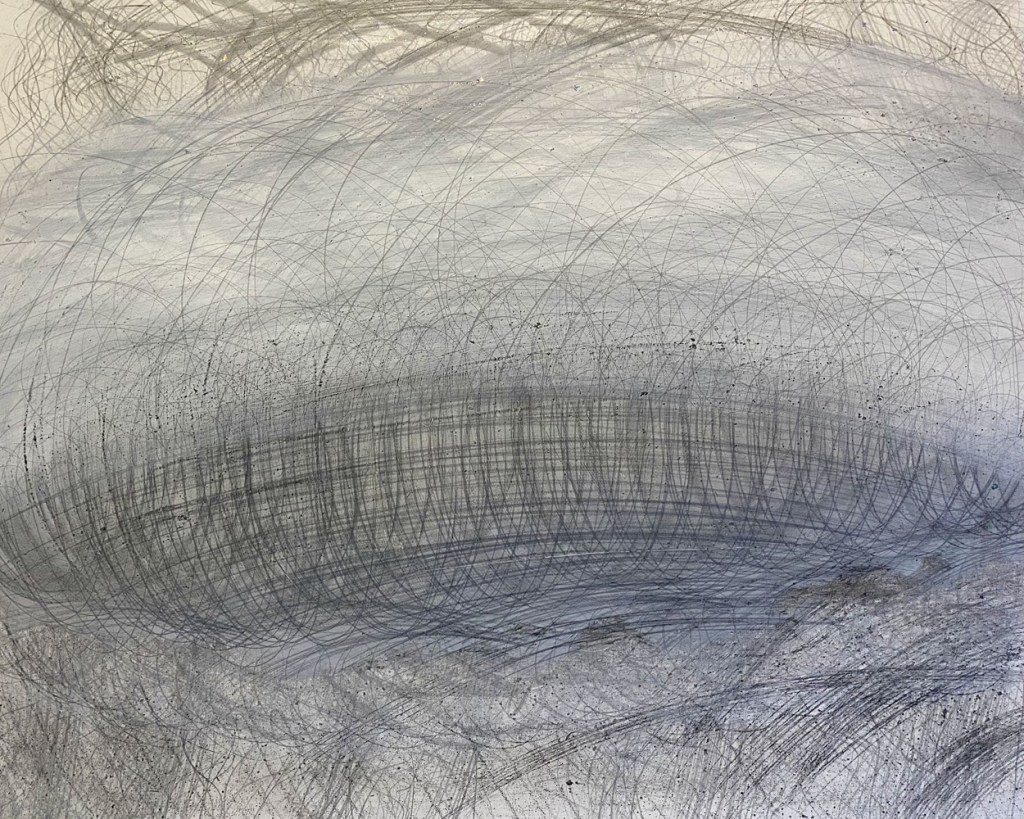 Timepieces MASSMOCA: A series of nine drawings relay and embody patterns of movement based in local and regional geologies throughout the northern Berkshires region, from observation and improvisation of feedback cycles, loops, waves, gesture drawing methods, and similar natural patterns. Media include silverpoint, acrylics, locally-sourced graphite, mica, and meteorite on watercolor paper, 18″x24″ inches. These artworks were made during an artist’s residency at MASSMOCA, in North Adams.