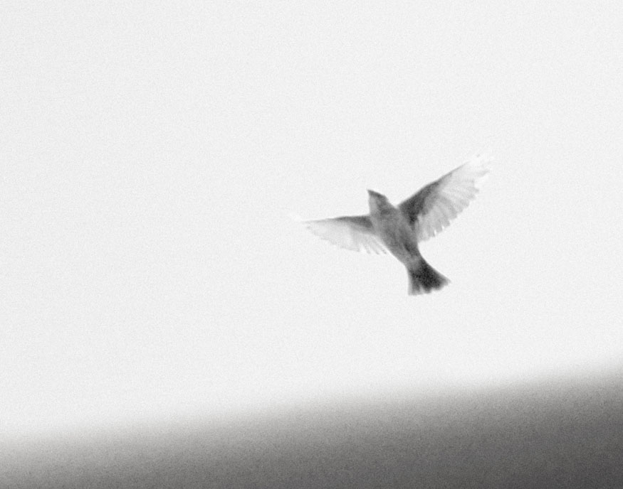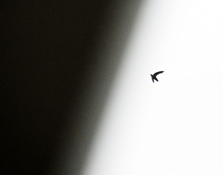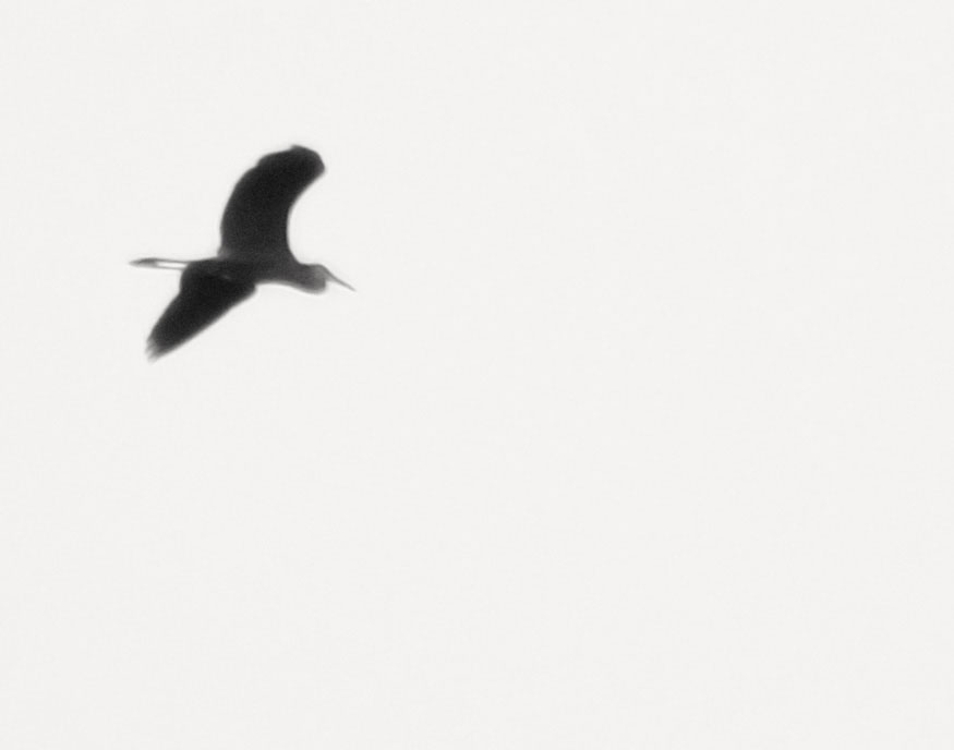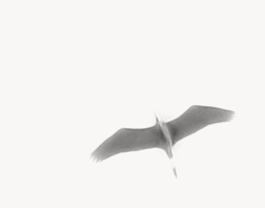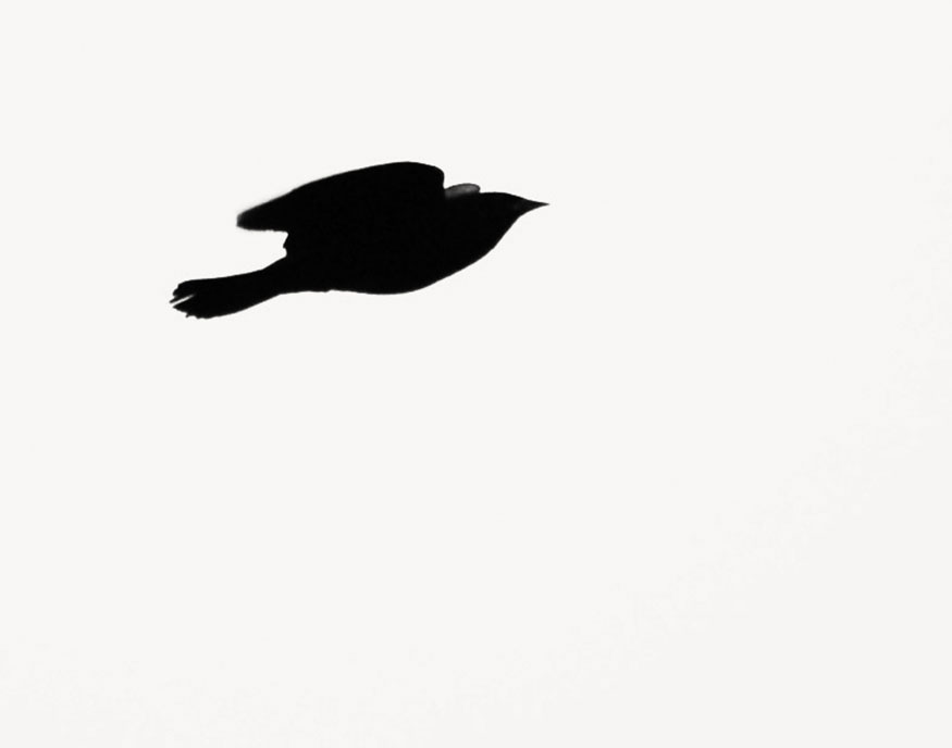 Silhouette: a series of about twenty-five digital photos taken with extremely long lenses far outside the range of normal human vision, on cloudy days, of birds in flight and at angles to the sunlight that caused them to be silhouetted — a careful study of natural forms that fall outside our normal perceptions. Dimensions variable.