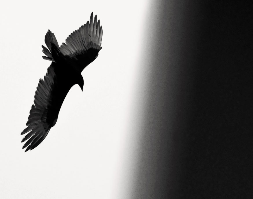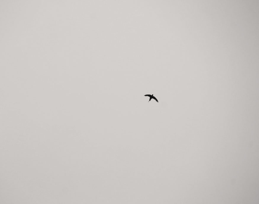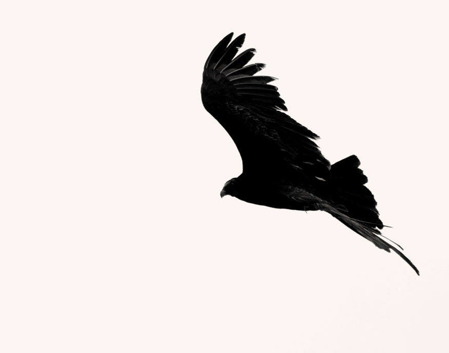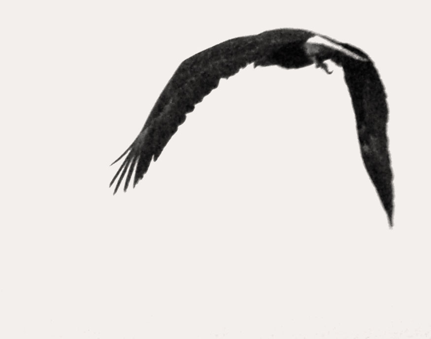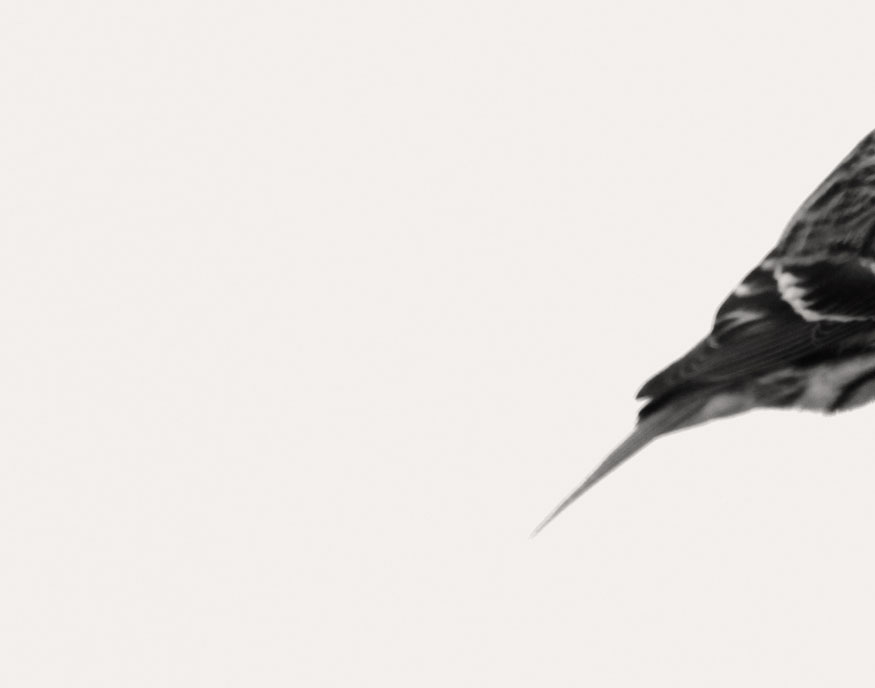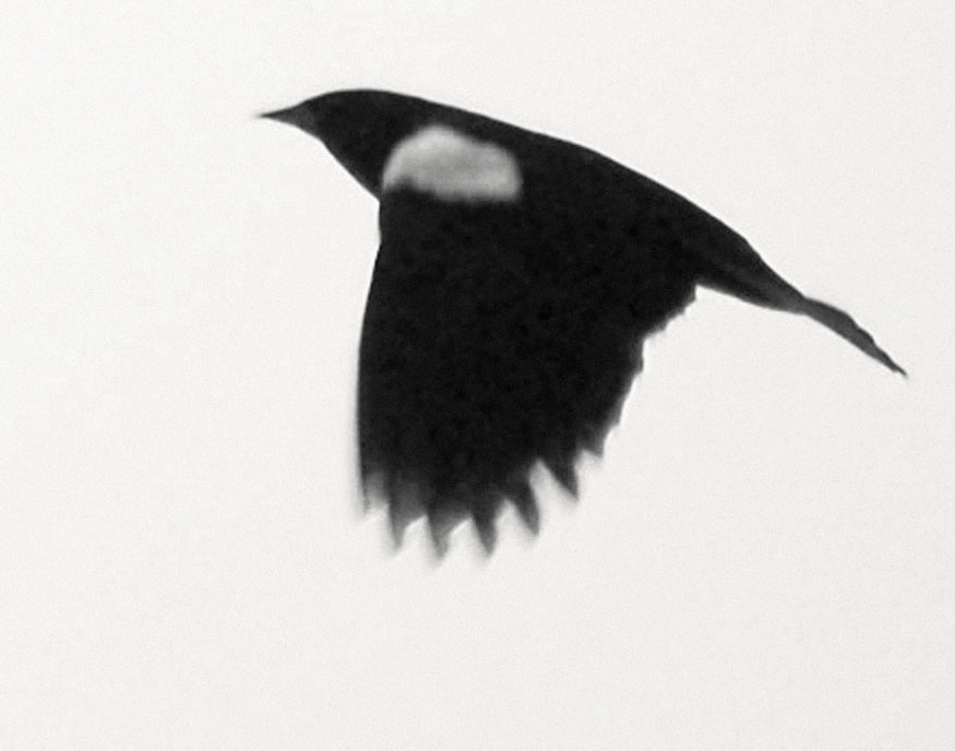 Silhouette: a series of about twenty-five digital photos taken with extremely long lenses far outside the range of normal human vision, on cloudy days, of birds in flight and at angles to the sunlight that caused them to be silhouetted — a careful study of natural forms that fall outside our normal perceptions. Dimensions variable.