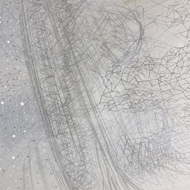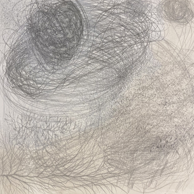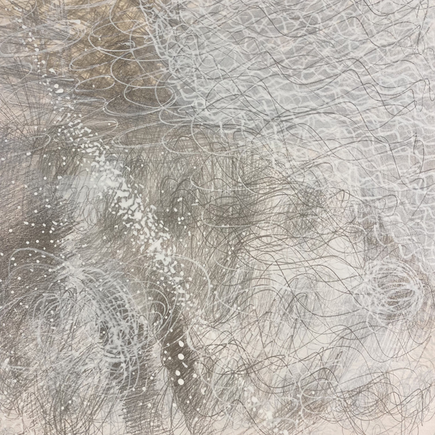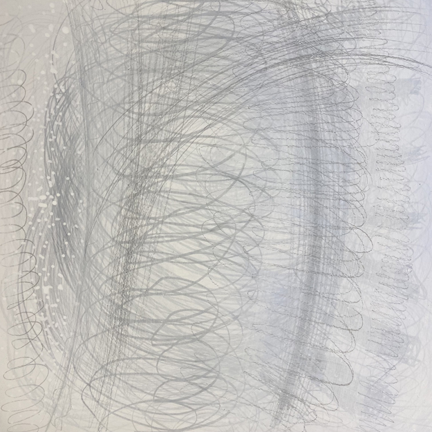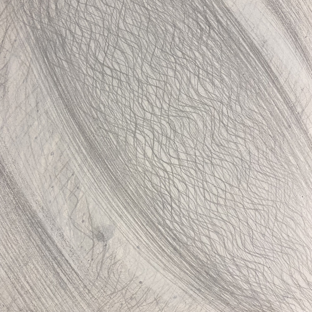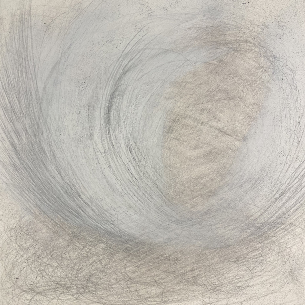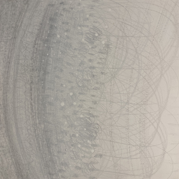 Trajectories (Small Timepieces): 8″x8″ silverpoint, titanium dioxide and iron oxide paints on cotton paper. Created by improvisation and gesture drawing from natural patterns, each image’s creation lasted about one week’s time. Presented open to the air, viewer’s breathing gradually helps cause the silverpoint to tarnish, becoming a darker and warmer brown.