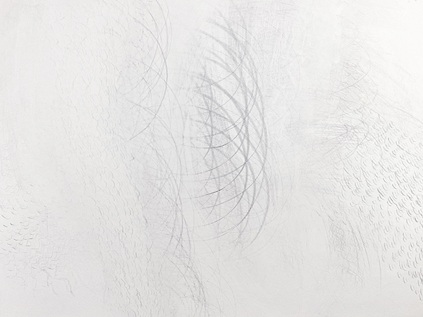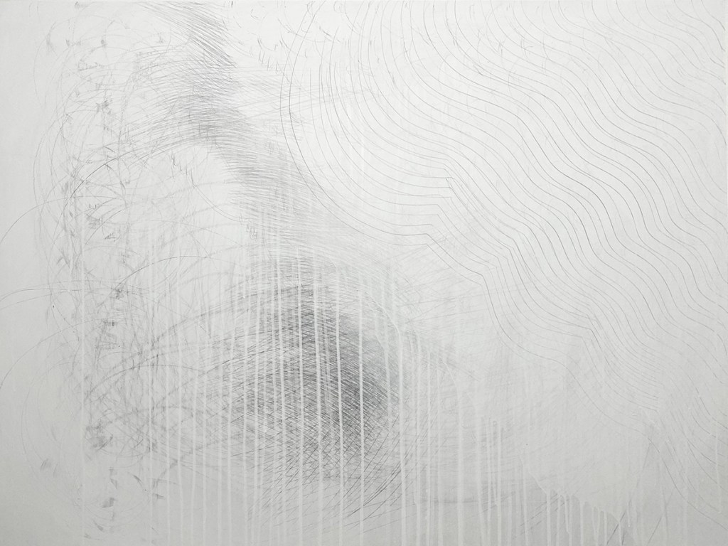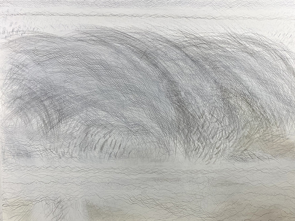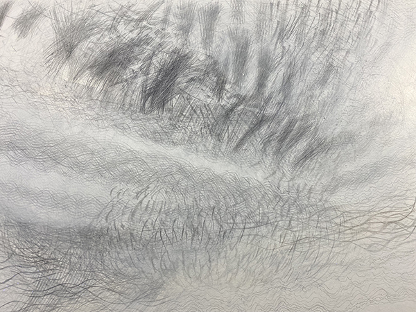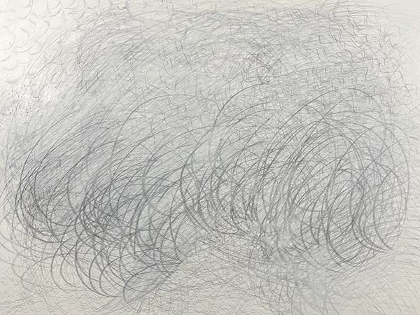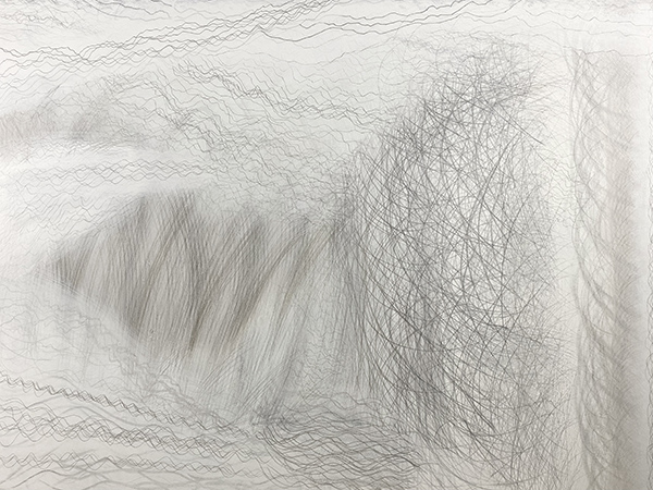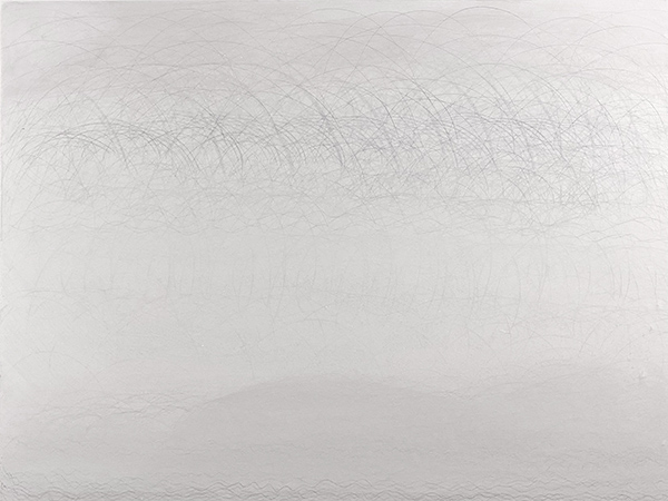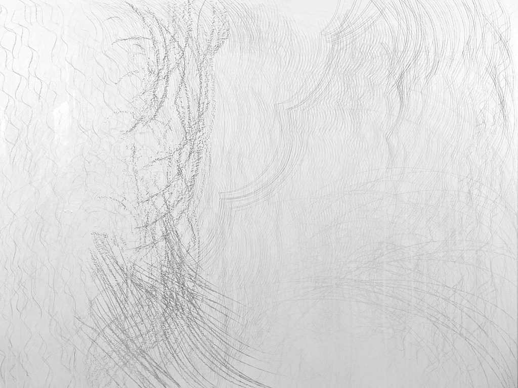 Nature changes. The artist changes too and so the Timepieces drawings change while made and viewed. For example, silverpoint tarnishes. It also reflects light such that dark lines can appear bright. Unlike a contour-drawing of a fixed view (like an outline portrait of a bird), my methods rely on gesture-drawing of unfixed patterns of movements (like the drumming wingbeats of a bird’s flight). Inspirations include sunlight refracting in water, the wind in trees, layered erosions, and even shifting memories. These patterns need timing to relay form and measure. Within a rectangular 3:4 ratio, often each drawing grows over 3 months within one of 4 seasons. Then the artistry continues. Each piece remains reworkable, reusable. New layers are added before and after exhibit. Everything flows, everything changes, sometimes quickly, sometimes slowly. These artworks resemble other types of abstraction, but instead of grandiose mural-sized permanent paintings from ideas of Modernist essentialism (or postmodern relativism), the Timepieces are smaller, impermanent, renewable, and borne of philosophical naturalism. Although they are inspired by the syntaxes of nature and science, they neither depict images nor explain scientific or philosophical concepts. Instead, they both are and embrace change as artful physics through drawing, as visual moments to be viewed, borne of ways that nature keeps moving.